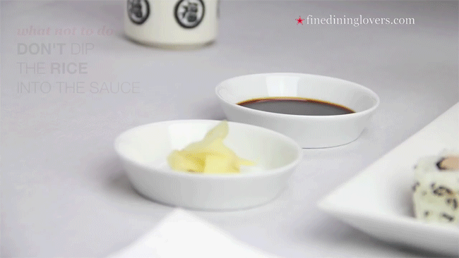 - Thứ ba, bạn cũng nên tránh xé cuộn sushi ra. Bởi sau khi xé ra xong thì rất khó gắp, đồng thời phần nhân bên trong sushi cũng rơi ra đầy đĩa trông không đẹp mắt chút nào.