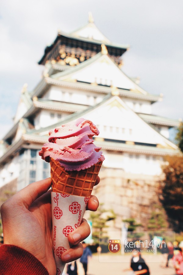 Điểm dừng chân thứ 2: Lâu Đài Osaka và vị kem Dâu Rừng