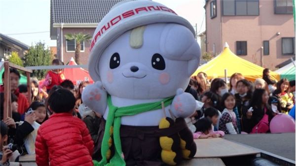 Sanomaru với trang phục samurai và một bát ramen trên đầu là biểu tượng du lịch của thành phố Sano.