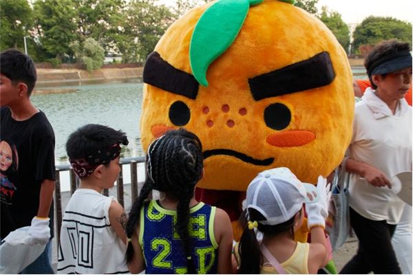 Takinomichi Yuzuru là linh vật của thành phố Minoh, nổi tiếng với nhiều loại trái cây như cam hay quýt.