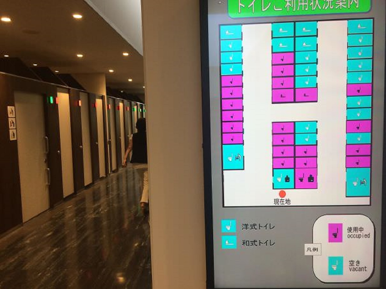 Hệ thống nhà vệ sinh công cộng thông minh có bảng chỉ dẫn rất rõ ràng để du khách biết được đâu là phòng trống, lựa chọn kiểu vệ sinh ngồi bệt hay ngồi xổm.