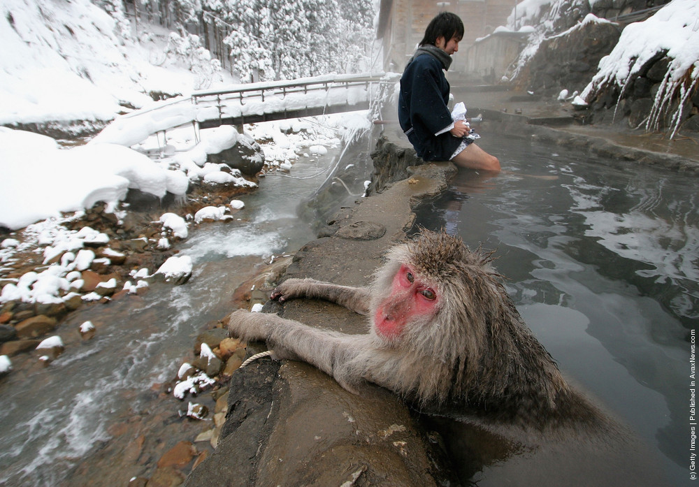 Khi công viên Jigokudani được thành lập, để giải quyết vấn đề tranh giành suối nước nóng giữa người và khỉ, một onsen đã được tạo ra cho khỉ. Vào mùa đông, khỉ xuống đây tắm rất nhiều.