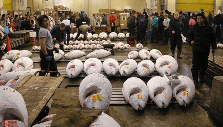 Điểm đến đầu tiên trong hành trình khám phá cuộc sống nhộn nhịp của người dân Tokyo chính là chợ cá Tsukiji. Tọa lạc ngay tại quận Tsukuji, trung tâm thủ đô Tokyo, nơi đây được xem là vựa bán sỉ cá và hải sản lớn nhất trên Thế Giới. Đến với Tsukiji du khách sẽ có cơ hội tận mắt trông thấy hoạt động trao đổi, buôn bán cá ngay tại đầu mối trước khi chúng được xuất ra nước ngoài. Ngoài ra nơi đây còn hấp dẫn du khách bởi các cuộc đấu giá cá ngừ rất nhộn nhịp bắt đầu từ 3h sáng, hay việc chứng kiến quá trình chế biến hải sản rất thú vị ở khu “Chợ trong”. Bạn đừng quên ghé thăm quán ăn nào đó để thưởng thức món sushi tươi ngon tại nơi đây nhé.