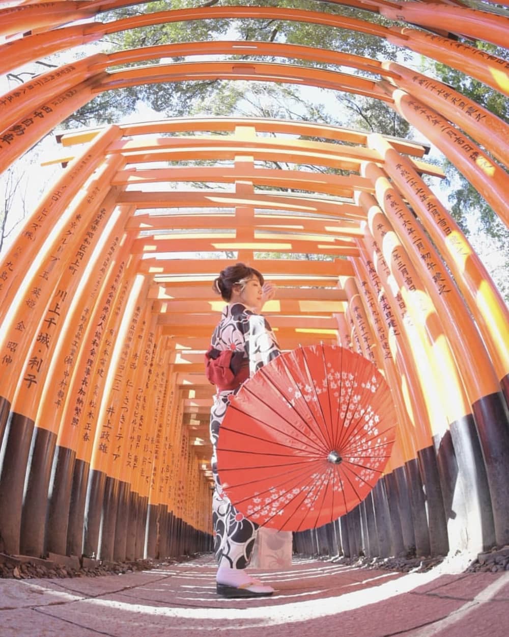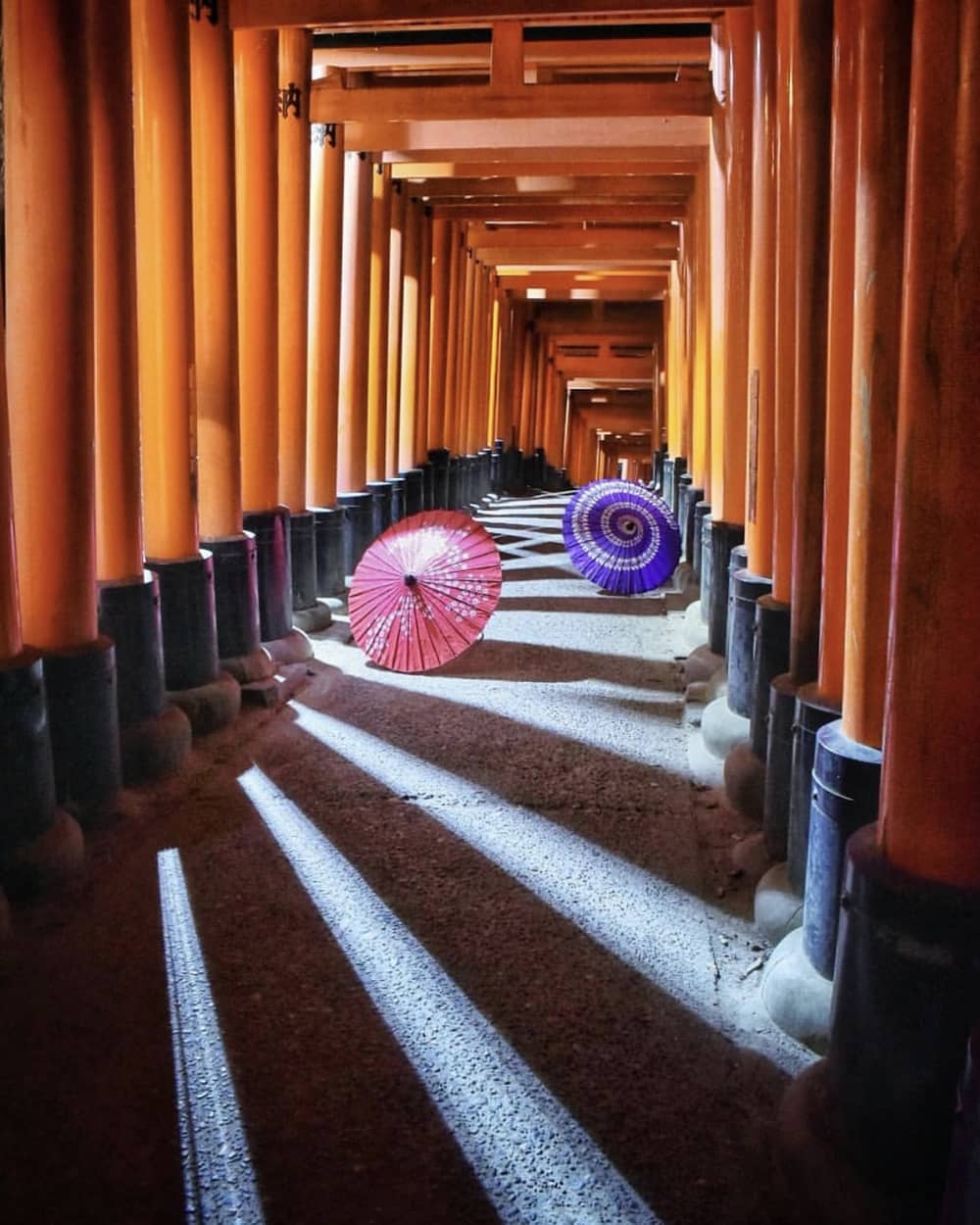 Fushimi Inari là ngôi đền luôn nằm trong top điểm đến nổi tiếng nhất Kyoto, không chỉ bởi những lời cầu nguyện về kinh doanh, buôn bán được linh ứng mà còn bởi vẻ đẹp của con đường ngàn cổng Torii. Mỗi chiếc cổng ở đây tương đương một ước nguyện thành hiện thực của người dân, số lượng cổng đã lên đến mười ngàn cái. Nếu muốn chụp trên cung đường này vắng và đẹp nhất thì bạn nên đến từ khoảng 4h sáng nhé!