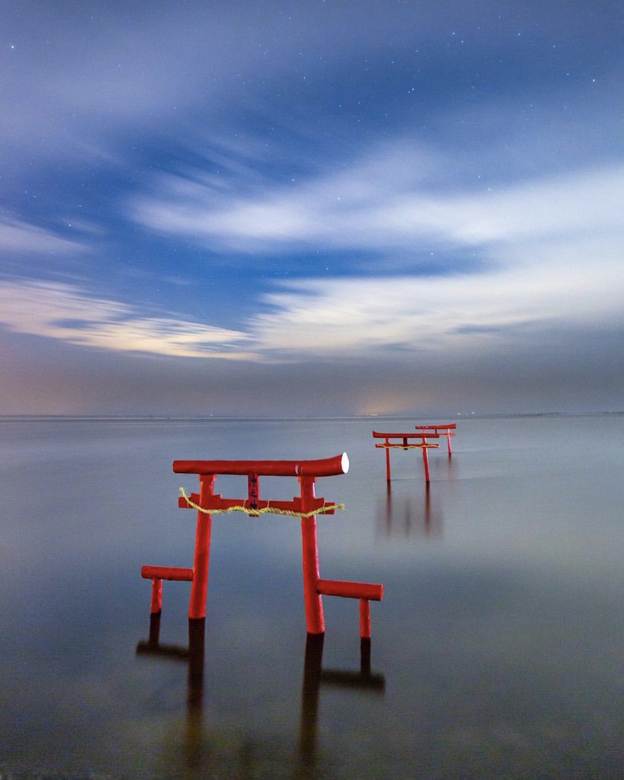 Chuỗi cổng Torii trên biển này vào ban ngày khi nước cạn trông rất… đáng chán, nhưng khi thủy triều lên lại tạo thành hình ảnh đẹp khó cưỡng. Bạn chỉ cần chọn thời điểm ghé thăm vào chiều tối hoặc sáng sớm là sẽ được chiêm ngưỡng khoảnh khắc đẹp nhất của chuỗi cổng Taigyo.