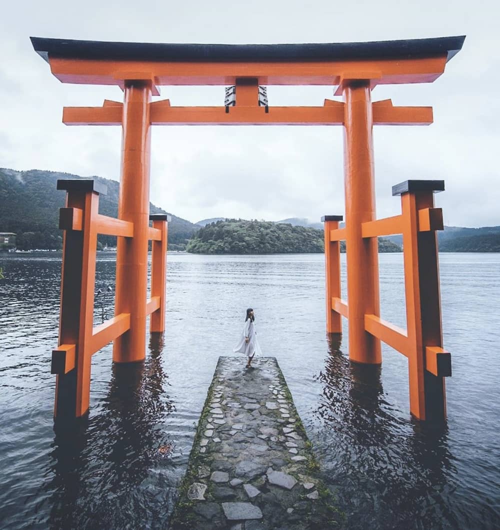 Đây là Torii tưởng niệm hòa bình đền Thần đạo Hakone với màu đỏ son đặc trưng được dựng trên mặt hồ Ashiko. Nhiều du khách đã tỏ ra rất kinh ngạc về màu sắc cũng như độ lớn của cánh cổng này. Vì nó được dựng lên ở ngay điểm xuống của bậc thềm đá của Sanseido nên rất tiện tham quan. Cảm giác như cánh cổng này sẽ dẫn lối đến một thế giới thần tiên nào đó vậy!