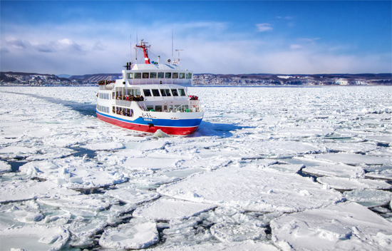 Những dòng sông ở Nhật Bản thường bị đóng băng vào mùa đông. Nhưng nhờ vậy mà dịch vụ du thuyền trên sông băng lại rất hút khách đi tour du lịch Nhật Bản đến đây. Khi đi trên những con tàu phá băng, bạn có thể hướng mắt ra quan sát quang cảnh khác lạ hai bên dòng sông, ngắm nhìn những loài động vật quý hiếm tìm thức ăn trong băng giá. Cũng có những loài vật rất biết cách “hưởng thụ” những cái lạnh khốc liệt của mùa đông như những chú khỉ mặt đỏ tại công viên bảo tồn Jigokudani thuộc Nagano. Chúng vui đùa dưới những dòng suối nước nóng y hệt như khi con người tắm Onsen vậy.