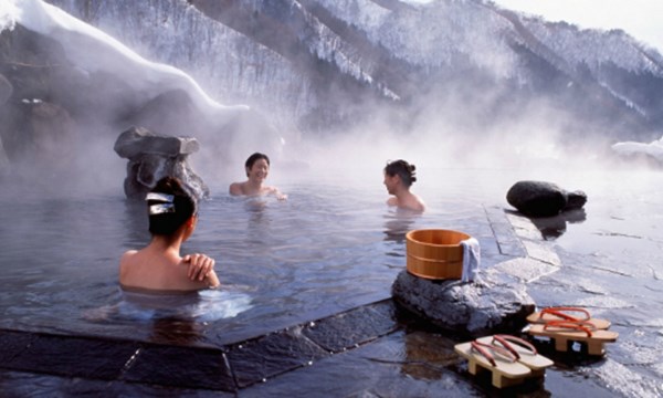 Nhật Bản có khá nhiều núi lửa tưởng như bất lợi, nhưng lại rất có lợi khi những nơi đó được khai thác để tắm nước suối nóng, tiếng Nhật gọi là Onsen. Thông thường cạnh những ngọn núi lửa là rất nhiều mạch nước tạo nên các con suối nước nóng. Ước tính Nhật Bản là quốc gia có nhiều suối nước nóng nhất thế giới và dịch vụ tắm nước suối nóng giúp cho nhiều người muốn đi tour du lịch Nhật Bản. Mùa đông là một dịp lý tưởng để bạn ngâm mình trong những dòng nước ấm. Có một điều khá e ngại với những ai chưa thử trải nghiệm này đó là bạn phải cởi toàn bộ quần áo khi tắm ở Onsen.