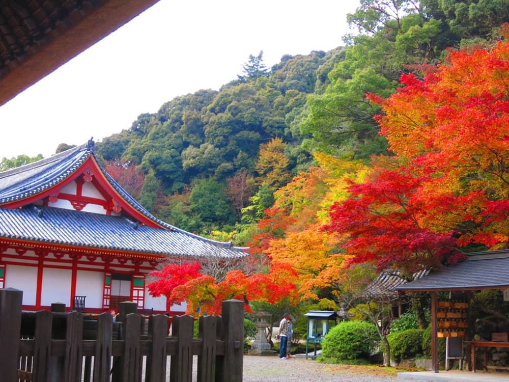 Được xây dựng đầu tiên vào năm 701, ngôi chùa được trùng tu và bảo tồn đến tận ngày nay. Cùng với những nét kiến trúc cổ kính, ngôi chùa nằm trên những đồi dốc thoai thoải còn thu hút du khách khi hòa với màu vàng đỏ của mùa thu. Du khách như bước vào thế giới của Phật, cảm giác thanh tịnh và vô ưu. Năm 2014 chùa được bầu vào top điểm đến khám phá mùa thu hấp dẫn nhất Nhật Bản. Vé vào cổng là 300 yên ( khoảng hơn 60.000 đồng).