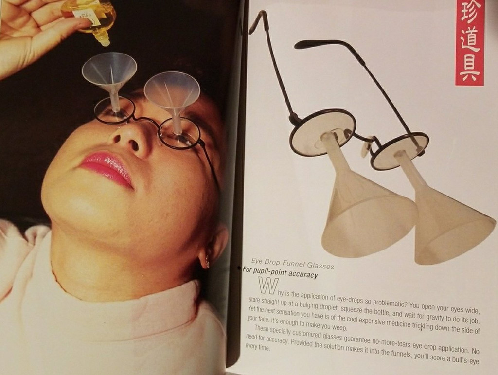 Kính nhỏ thuốc mắt là một trong những sản phẩm đầu tiên xuất hiện trên tờ tạp chí. Ông Kawakami khẳng định đã dùng công cụ này để giúp thuốc nhỏ mắt không chảy xuống má.