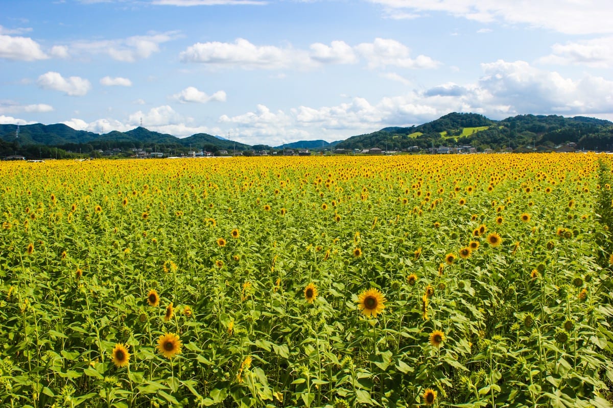 Nếu như Hokuryu ở Hokkaido tự hào là quê hương hoa hướng dương lớn nhất Nhật Bản thì Mashiko cũng kiêu hãnh với cánh đồng hoa đẹp rực rỡ, cùng khoảng một triệu bông hoa hướng dương trải thảm vàng cả một góc trời.