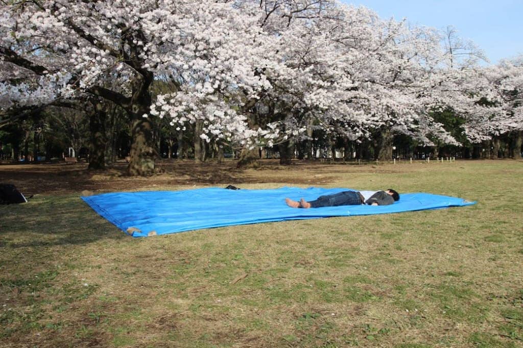 Chỉ lấy chỗ vừa đủ: Giữ chỗ được xem là một trong những nhiệm vụ khó khăn nhất nếu bạn muốn tổ chức một buổi hanami. Những chỗ gần cây hoa, dễ tới nhà vệ sinh và khu đổ rác thường rất nhanh hết. Người ta thường trải trước một tấm bạt để giữ chỗ. Nếu chiếm quá nhiều chỗ, bạn có thể khiến người khác mất cơ hội thưởng hoa. Ảnh: Artforia.