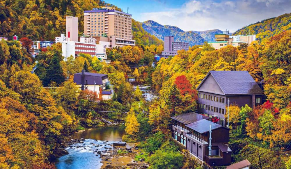 Nằm ở phía nam thành phố Sapporo, suối nước nóng Jozankei Onsen vừa có thể thỏa mãn nhu cầu nghỉ dưỡng, vừa là điểm chụp hình sống ảo cho du khách. Jozankei Onsen còn được biết đến như một địa diểm lí tưởng đế ngăm lá đỏ vào mùa thu ở Nhật Bản.