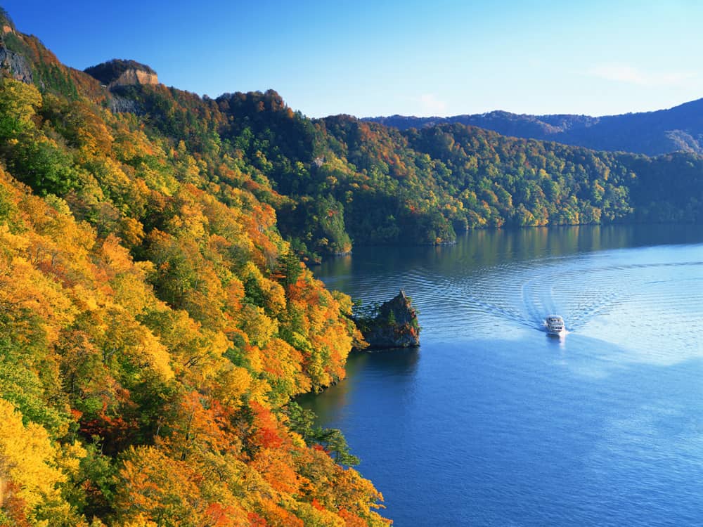 Hồ Towada, Tohoku: Hồ Towada là điểm ngắm cảnh mùa thu nổi tiếng. Cách trải nghiệm tuyệt nhất ở đây là đi trên các du thuyền ngắm cảnh quanh hồ.