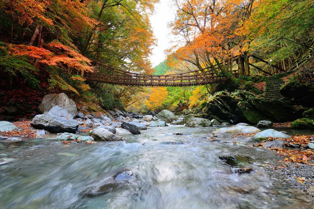 Thung lũng Iya, Tokushima: Nằm trên đảo Shikoku, thung lũng Iya không phải điểm ngắm lá thu dễ tới, nhưng đáng để bạn bỏ công. Bao quanh bởi những đỉnh núi hùng vĩ và hẻm núi hiểm trở, nơi đây giống như một điểm đến bí mật cho du khách ưa mạo hiểm.