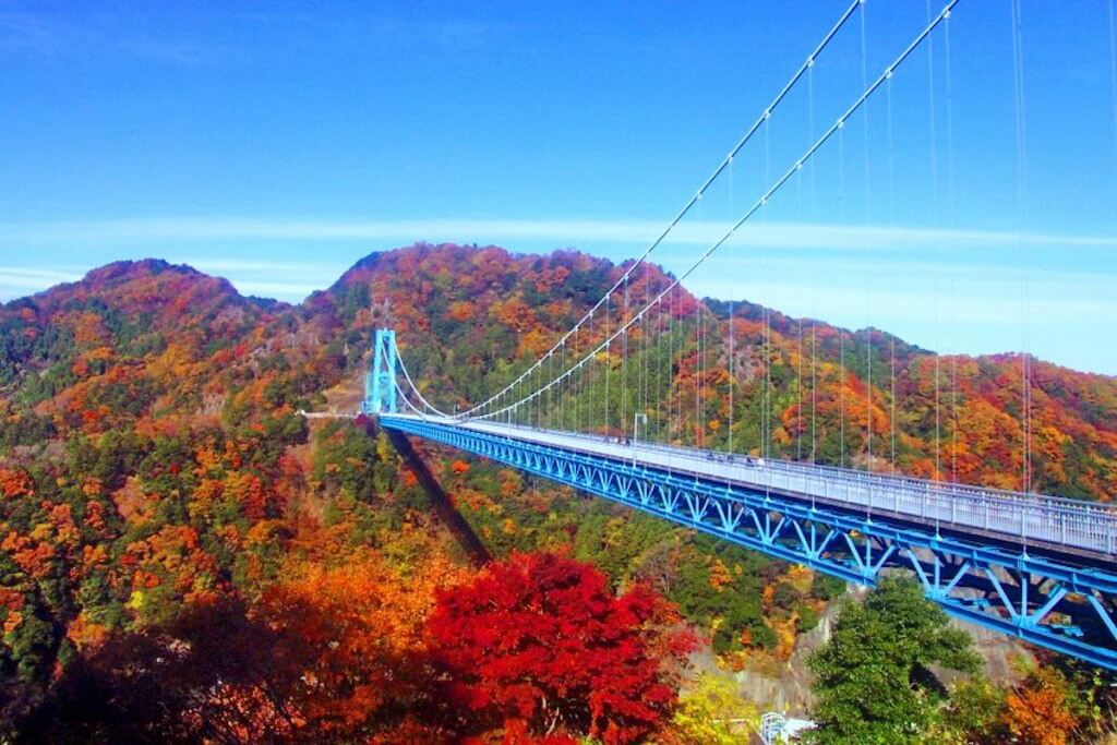 Cầu Ryujin, Ibaraki: Cầu Ryujin là cầu treo dài nhất Nhật Bản, độ dài chính xác là 375 m. Được bao quanh bởi khung cảnh núi rừng, vào mùa thu hút khách du lịch là mua lá đỏ thì khi lượng người đến đây vào khoảng 250.000 người mỗi năm.
