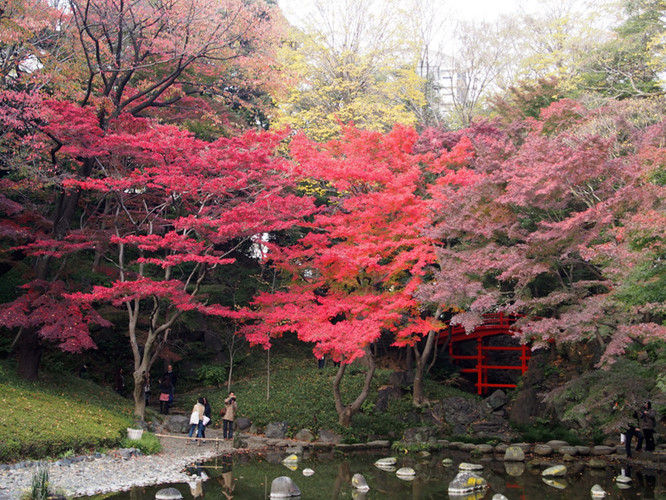 Vườn Rikugien được thành lập năm 1695 tái tạo 88 khung cảnh thu nhỏ từ những bài thơ cổ điển. Mùa thu được coi là thời điểm tốt nhất để thăm vườn Rikugien.