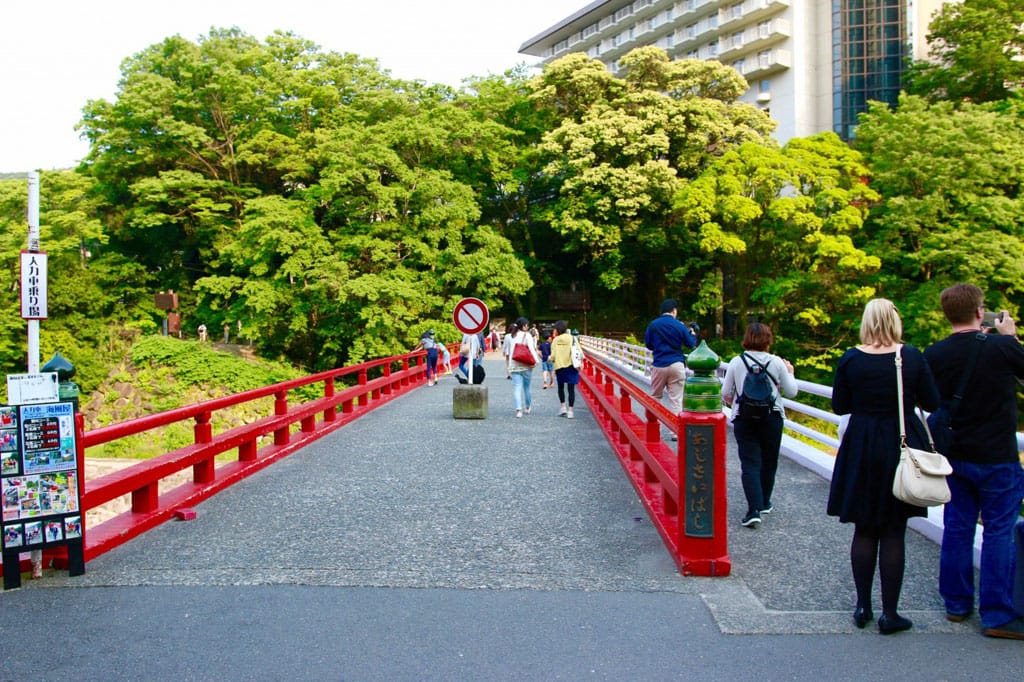 Cầu Ajisai Bashi có màu đỏ nổi bật thu hút hàng nghìn khách du lịch Nhật Bản. Không khí ở đây luôn luôn nhộn nhịp vì khách đi lại rất nhiều. Nếu ở trên cầu, bạn có thể phóng tầm nhìn ra xa chiêm ngưỡng cảnh vật xung quanh trải dài bất tận. Tầm nhìn từ cầu đẹp đến nỗi xưa kia danh họa Hiroshige Utagawa thường xuyên đến đây, để sáng tác nhiều tác phẩm nổi tiếng về thiên nhiên. Khung cảnh ở đây đã khác xưa nhưng vẫn tạo ấn tượng với nhiều du khách đi qua cầu.