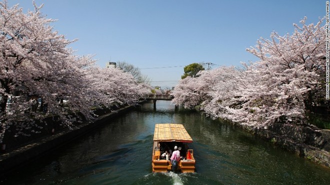 Vào mùa xuân, hai hàng cây anh đào dọc bờ sông Okazaki đua nhau nở, thu hút rất nhiều du khách Nhật Bản và quốc tế ghé thăm.