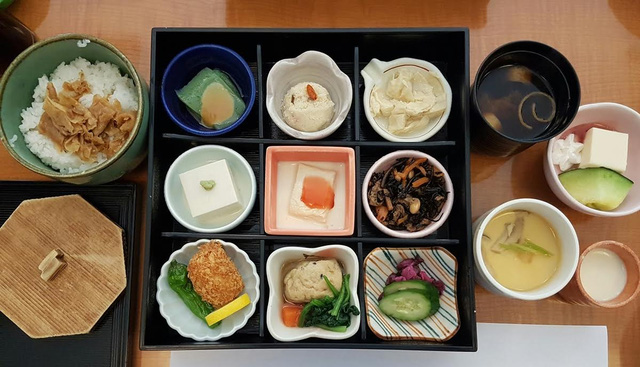 Bữa ăn tại nhà hàng Shizukaan, một nhà hàng nổi tiếng với đặc sản là những món ăn tinh tế đầy màu sắc với nguyên liệu chính là đậu phụ
