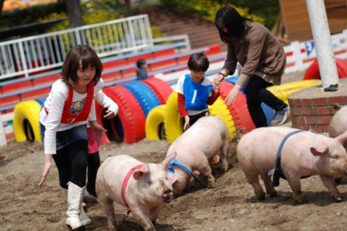 Trang trại này là địa điểm gần Tokyo duy nhất bạn có thể chứng kiến và tham gia cuộc đua của những chú lợn.