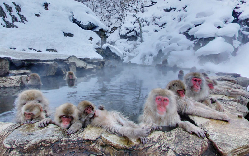 9. Công viên Khỉ Jigokudani - tỉnh Nagano, Nhật Bản. Nơi đây là khu vực suối nước nóng thu hút hàng ngàn chú khỉ tuyết tới tắm ngay cả mùa đông giá rét. Du khách tới đây vừa có thể thưởng ngoạn cảnh đẹp, vừa có thể chứng kiến đàn khỉ ngâm mình trong dòng nước ấm.