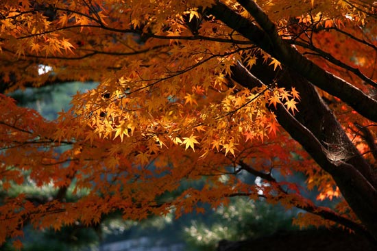 Những chiếc lá mang hình chiếc quạt xoay xoay trên những tán cao. Sắc lá phong đã chuyển dần sang đỏ, rực rỡ cả một vùng trời. Sắc vàng, sắc đỏ cứ đan xen vào nhau, tạo nên những mảng màu đẹp đẽ trong khắp các khuôn viên, đền chùa đẹp đến ngỡ ngàng.