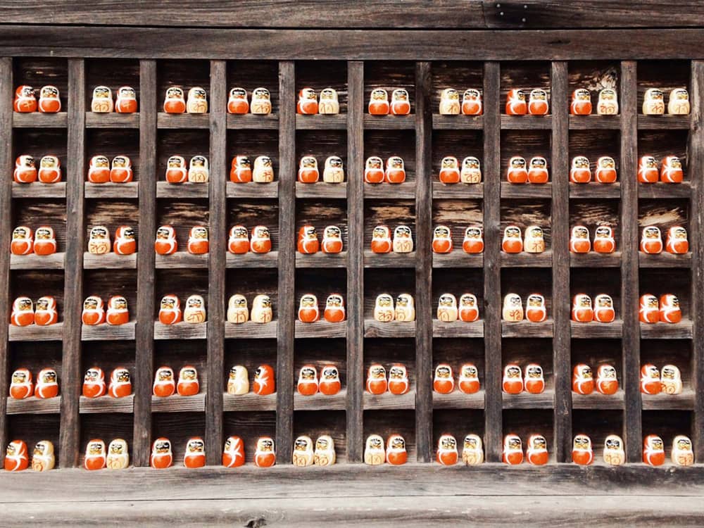 Điều đặc biệt của ngôi chùa này là rất nhiều tượng búp bê Daruma lớn nhỏ khác nhau xuất hiện bên trong chùa, hành lang, hay triền núi. Búp bê Daruma gắn liền với văn hóa Nhật. Tượng Daruma có mặt ở mọi nơi trên xứ Phù Tang.