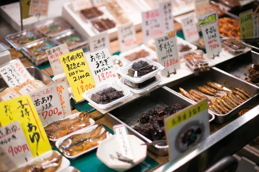 Sau khi nếm thử vô số món ăn vặt độc đáo, bạn hãy ghé qua các gian hàng nông sản và hải sản mua một vài món đồ đem về làm bữa tối. Hầu hết thực phẩm ở chợ Nishiki đều được người dân địa phương tự tay sản xuất và bán theo mùa. Rau củ muối, đậu phụ tươi, rau sạch, cá khô... là những thứ bạn cần cho một bữa ăn ngon miệng đều có sẵn trong khu chợ chỉ vỏn vẹn 400 m chiều dài này. Ngoài ra, bạn có thể tìm thấy những loại hải sản đắt đỏ như cá ayu hay cua matsubagai...