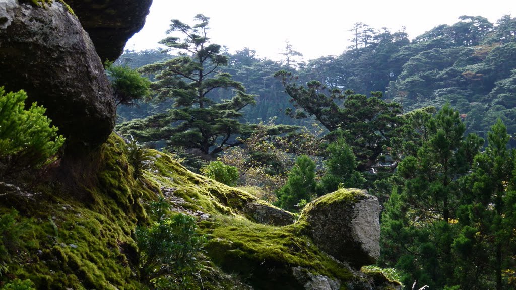Nơi đây có nhiều loại cây họ ficus sinh sống như Gajumaru hoặc Ako nằm ở độ cao tầm 200m so với mực nước biển. Những loại cây như Tabu, Chinquapin hoặc những loại sồi xanh biếc bốn mùa nằm ở độ cao từ 200 đến 800m. Ở những độ cao lên tới 1.600m là nơi cư trú của loài tuyết tùng Yakusugi nổi tiếng, đó là một trong những loài cây sinh sống lâu năm nhất trong các loài thực vật đang sinh tồn trên đất nước Nhật Bản.