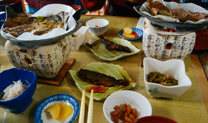 Ẩm thực ở Shirakawa cũng là điều mà du khách không thể bỏ qua khi tới với ngôi làng cổ này. Một trong số đó là món thịt bò Hida hảo hạng. Thịt bò mềm, tẩm ướp nhiều loại gia vị đặc trưng và nướng trên lá rất độc đáo.