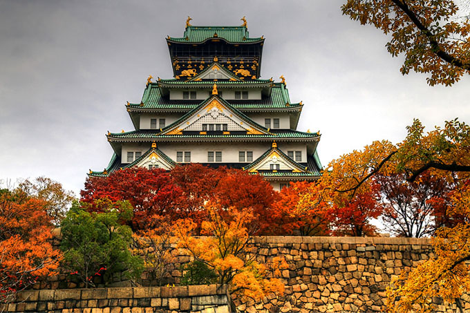Lâu đài Osaka nổi tiếng chắc chắn là một trong những điểm đến được ưa thích ở Osaka và được công nhận là Di sản Quốc gia. Với chiều cao 40 mét, công trình này gồm 8 tầng trưng bày hiện vật vũ khí, áo giáp cũng như vật dụng dân gian lâu đời. Riêng tầng 8 còn có nơi để đứng ngắm nhìn cảnh quan thiên nhiên xung quanh từ độ cao lý tưởng.