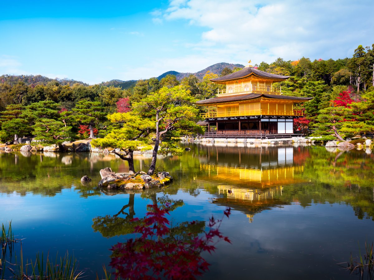 Một trong những ngôi đền nổi tiếng nhất là đền dát vàng Kinkaku-ji nằm yên ả trên mặt hồ… - Ảnh: Patrick Foto / Shutterstock