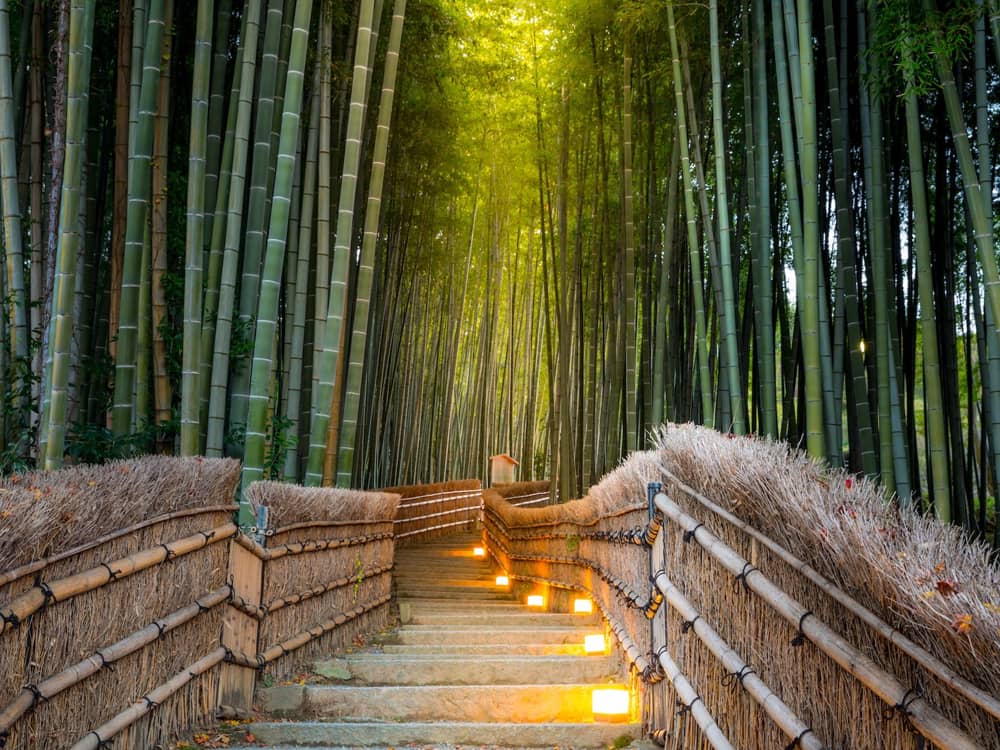 Nếu đến Kyoto, đừng bỏ lỡ cơ hội ghé qua rừng tre Arashiyama, nơi có con đường hai bên trải dài hai hàng trúc xanh mướt, dịu êm đến nỗi chỉ cần bước tha thẩn nơi đây, tự nhiên bạn sẽ cảm nhận được năng lượng yên bình và những phút giây thanh thản trong tâm hồn.