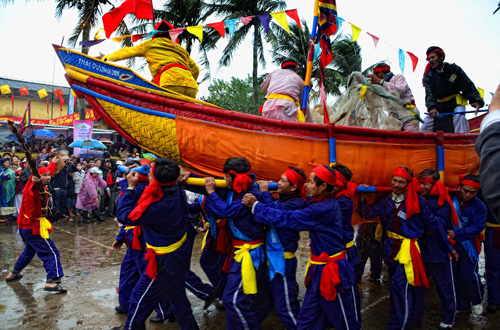 8. Hội cầu ngư, Huế Hàng năm vào ngày 12 tháng Giêng, cư dân Thái Dương Hạ, Thuận An lại long trọng tổ chức hội Cầu ngư. Trò diễn bủa lưới trong hội cầu ngư sẽ được tổ chức trước đình làng. Sau đó là cuộc đua thuyền trên phá của các xã lận cận. Kết thúc buổi lễ là buổi cơm thân mật giữa quan khách và dân làng ở địa phương. Lễ hội cầu ngư được tổ chức để tỏ lòng nhớ ơn vị cai canh làng là Trương Thiều, được gọi một cách kính cẩn là Trương Quý Công.