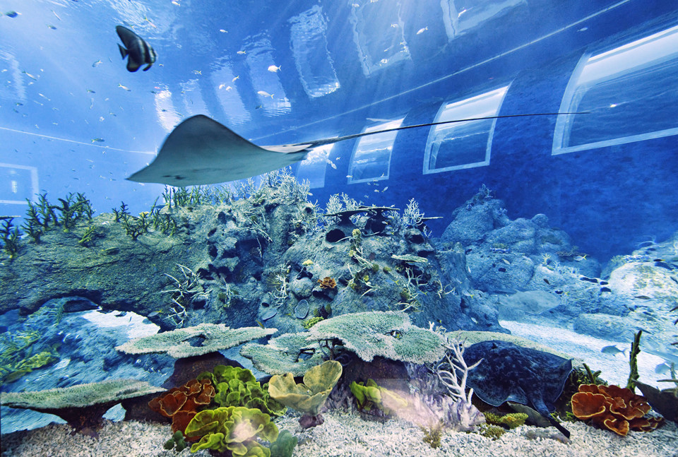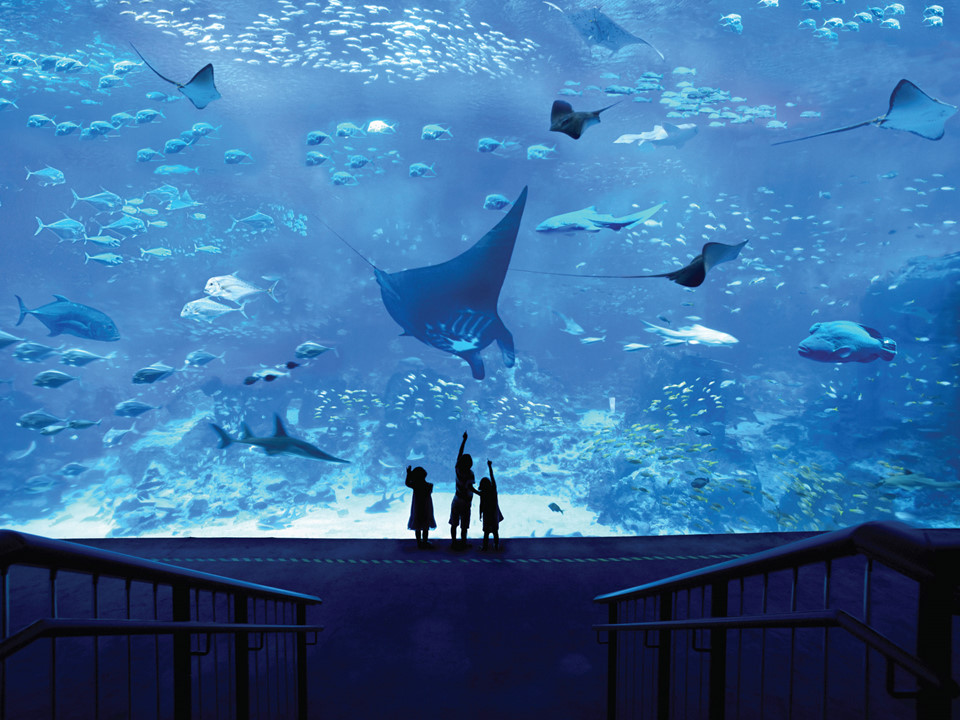 Biển cá mập Shark Seas là một trong những khu vực thu hút nhiều khách du lịch nhất. Tại chỗ này, bạn có cơ hội nhìn ngắm hơn 200 con cá mập dữ tợn, thậm chí những loại đang có nguy cơ bị tuyệt chủng như cá mập đầu búa, cá mập silvertip. Đặc biệt, chụp hình ở khu bể cá khổng lồ Open Ocean là điều không thể thiếu của du khách khi bước ra khỏi thủy cung này.