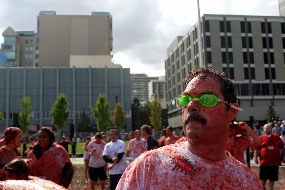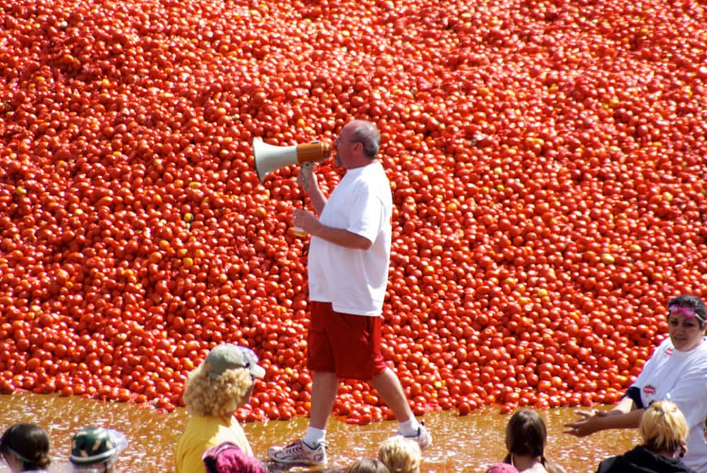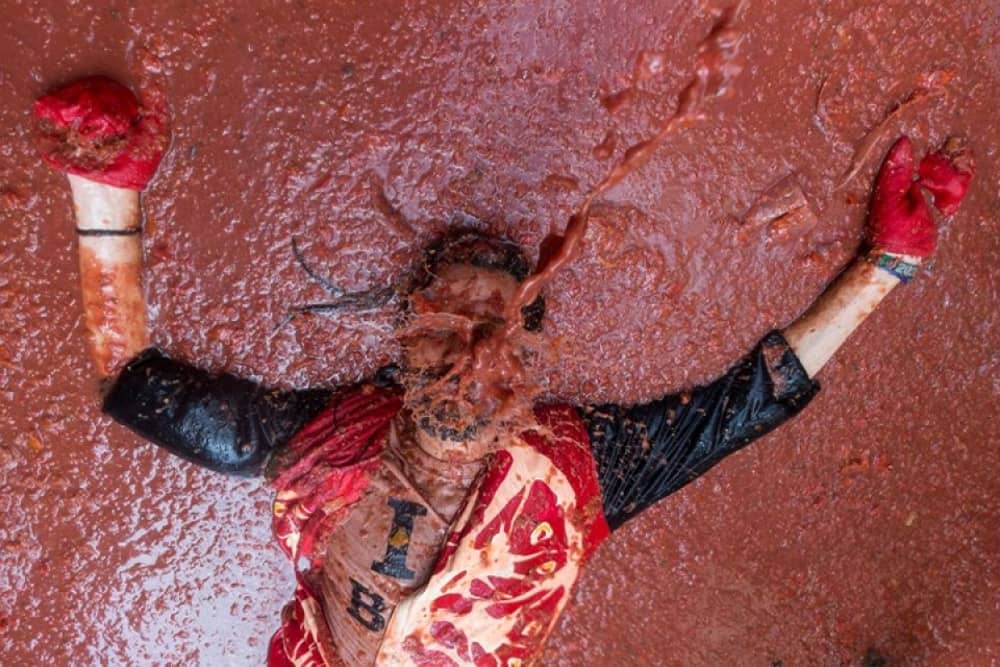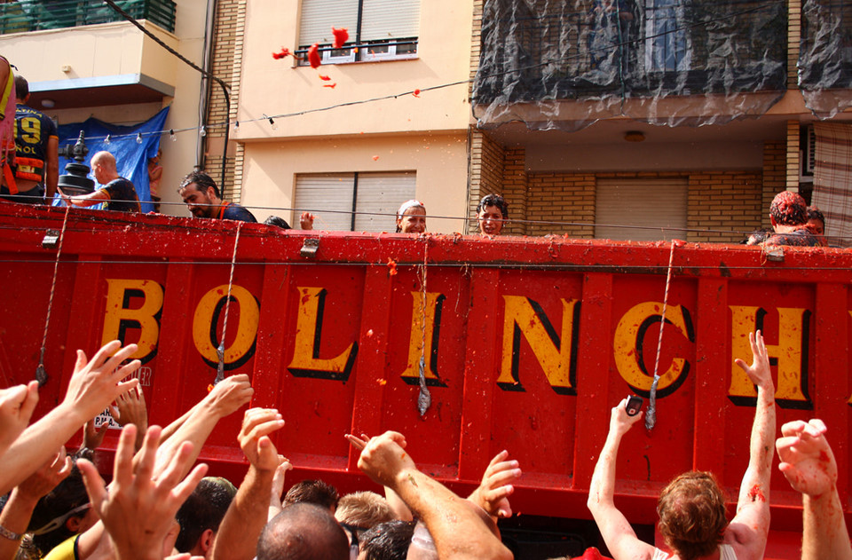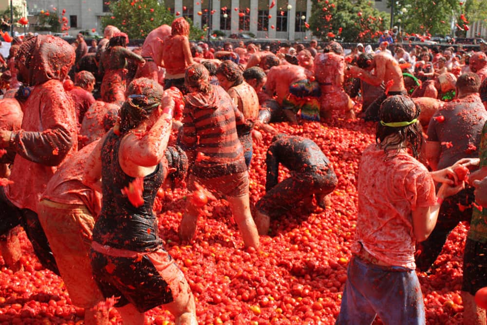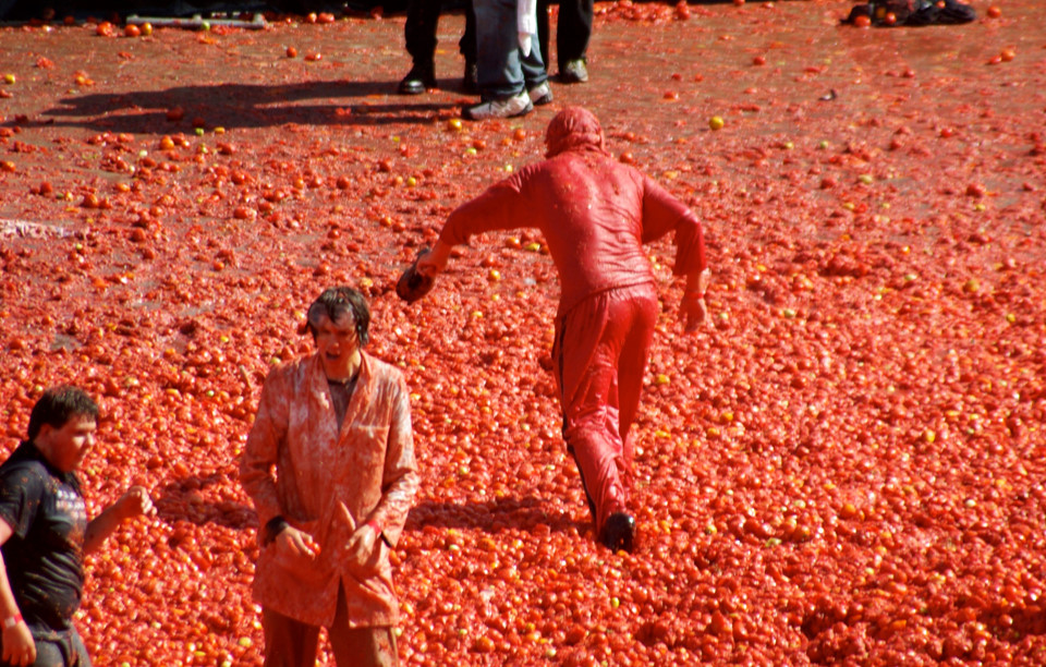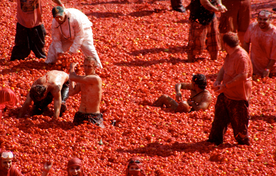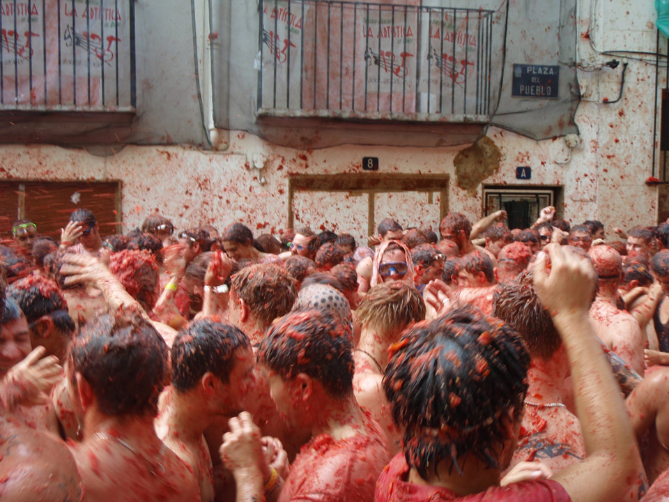 La Tomatina là lễ hội ném hoa quả lớn nhất châu Âu. Hàng năm, các du khách nước ngoài, chủ yếu là người Anh, Mỹ và Nhật, đổ về vùng Valencia, Tây Ban Nha, để tắm mình với hàng trăm tấn cà chua, nhuộm đỏ khắp phố.