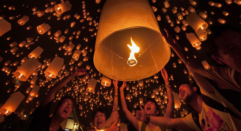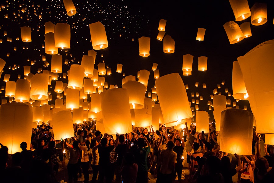 Tại các địa điểm công cộng, những chiếc đèn lồng sáng rực sẽ được thả bay lên không trung suốt đêm. Người dân Thái Lan tin rằng, hành động này biểu trưng cho việc gạt đi những điều phiền muộn, đau khổ của năm cũ.