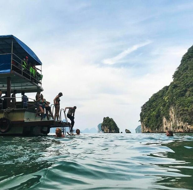 3. Vịnh Phang Nga: đây là địa điểm ghi hình của rất nhiều bộ phim nổi tiếng như "Điệp viên 007", "Công viên kỉ Jura" nên độ long lanh thì khỏi bàn rồi đấy! Vịnh Phang Nga là nơi tập trung nhiều ngọn núi đá vôi khổng lồ có vách dựng đứng nhô lên từ biển với hình thù khác lạ. Đừng quên ngồi trên thuyền và khám phá những hang động với những nhũ đá độc đáo từ thiên nhiên. Hang động nối tiếng nhất là Tham Lad với chiều rộng hơn 50m và chiều cao hơn 10m.