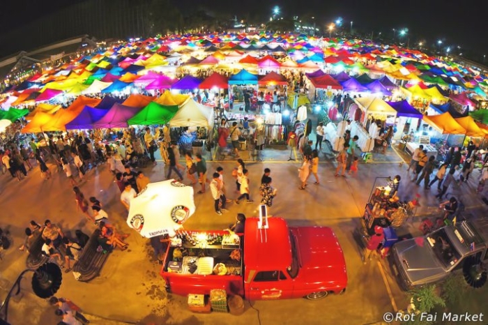 Nằm trên đường Srinakarin, chợ đêm Train Market hay Rod Fai là một trong những điểm tham quan hút khách của Bangkok. Ảnh: Daily Mail.