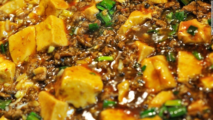 Đậu phụ Mapo, Tứ Xuyên: Món ăn này được làm từ tương đậu cay, đậu phụ, thịt lợn băm và loại ớt cay nổi tiếng của Tứ Xuyên. Đậu phụ Mapo rất hợp ăn với cơm trắng.