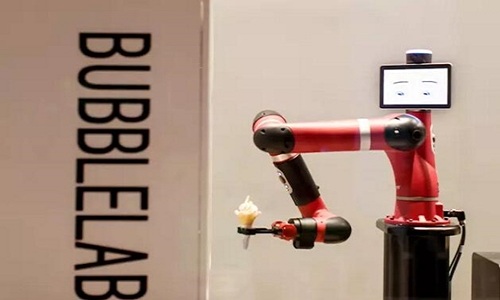 Người máy làm kem do Bubble Lab sáng chế. Sau khi khách hàng chọn kem, quét mã và trả tiền thông qua màn hình iPad, cỗ máy sẽ tự động làm việc. Toàn bộ quá trình chỉ mất khoảng hai phút và không cần sức người.