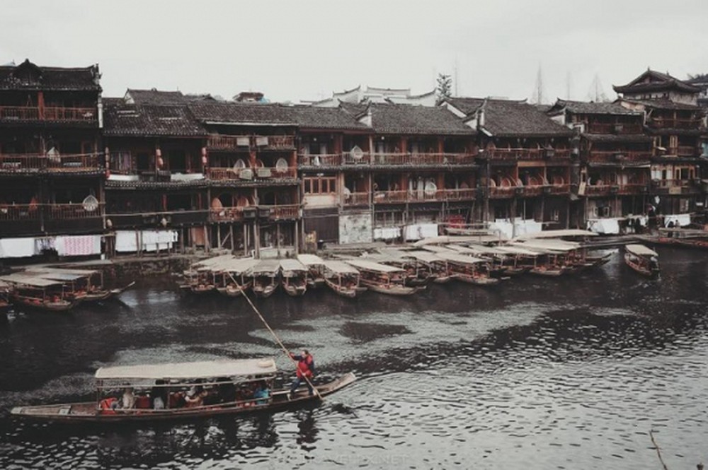 Phượng Hoàng Cổ Trấn nằm hai bên sông Đà Giang. Ngôi trấn cổ còn lưu giữ nhiều thành quách, những dãy phố, những căn nhà cổ, gia trang, văn miếu, đền chùa. Với hơn 1.300 tuổi, Phượng Hoàng trở thành một trong những bảo tàng sống về văn hóa các dân tộc.