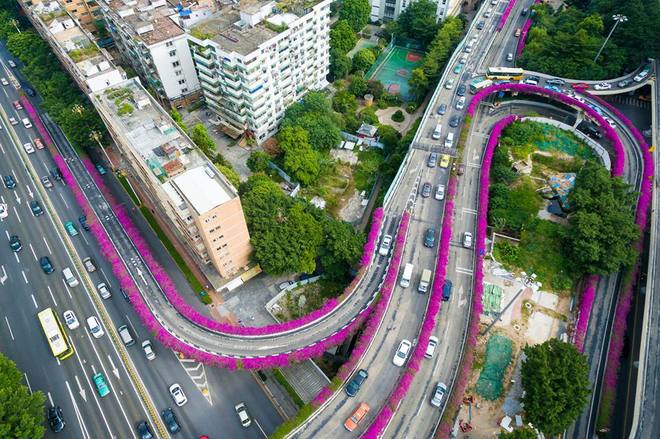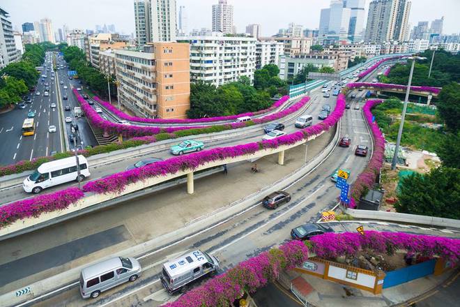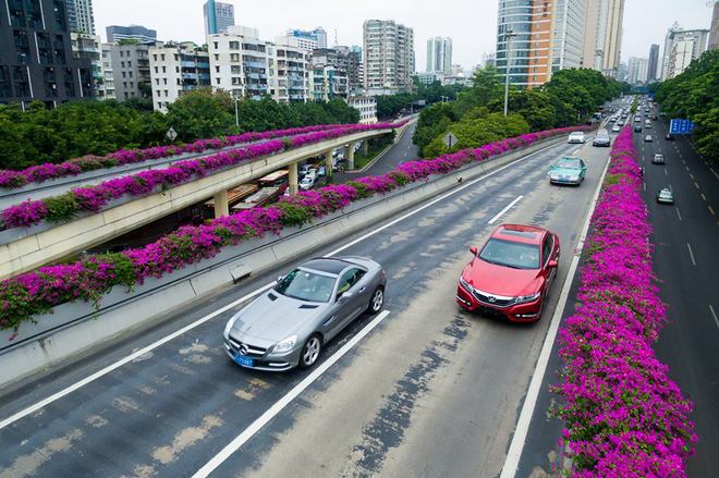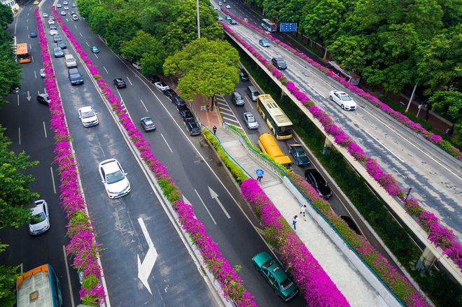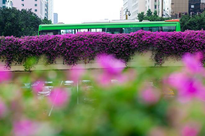 Các loại hoa thay phiên nhau nở, mang lại hình ảnh đẹp như ngôn tình cho thành phố hiện đại.