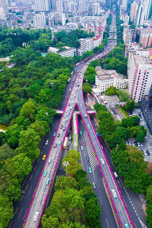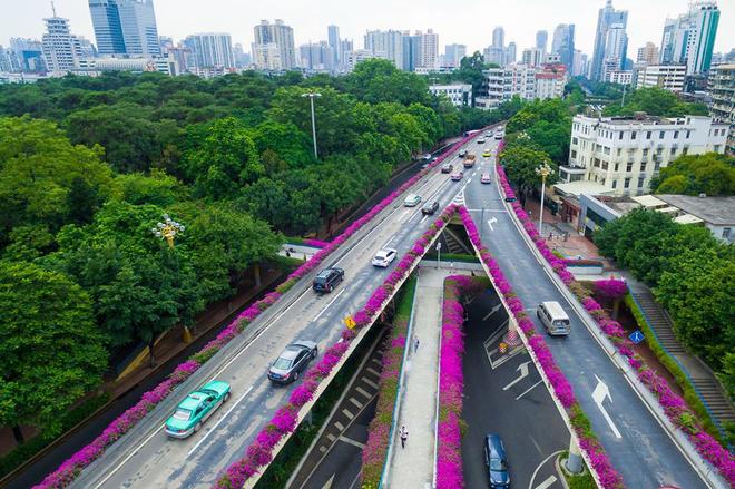 Những ngày này, khắp các con đường cao tốc ở thành phố Quảng Châu (Quảng Đông, Trung Quốc) được phủ một màu tím mơ màng, khiến những đại lộ ngày thường đầy khói xe bụi bặm trở nên lãng mạn.