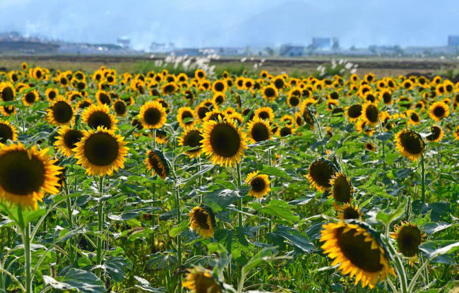 Cánh đồng hoa hướng dương nở rộ tuyệt đẹp tại huyện La Bình, tỉnh Vân Nam.