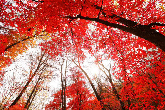 Khung cảnh mùa thu ở thung lũng Lá đỏ tại thành phố Giao Hà, tỉnh Cát Lâm.