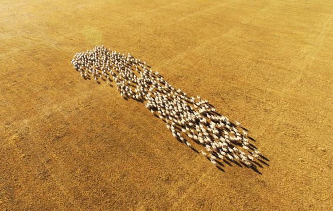 Đàn gia súc di chuyển qua thảo nguyên vàng óng vào mùa thu ở khu Nội Nông.