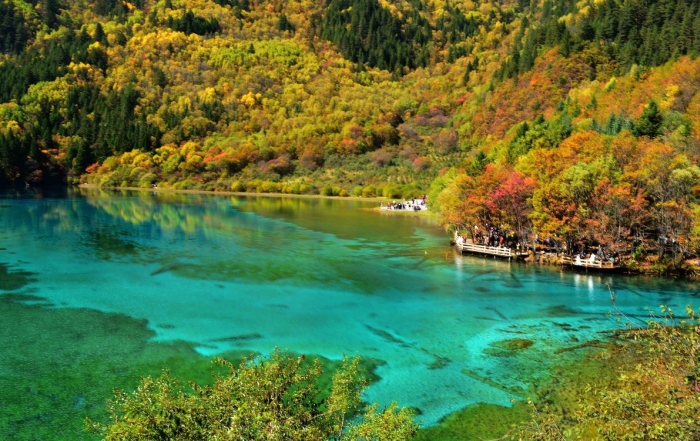 9. Khu thắng cảnh Cửu Trại Câu. Khu bảo tồn thiên nhiên, vườn quốc gia thuộc châu tự trị dân tộc Khương, dân tộc Tạng A Bá, miền Bắc tỉnh Tứ Xuyên, Trung Quốc. Khu phong cảnh Cửu Trại Câu được hình thành trên dãy núi đá vôi trầm tích thuộc các cạnh của cao nguyên Tây Tạng, nổi tiếng nhờ hệ thống các hồ đa sắc và các thác nước nhiều tầng và các đỉnh núi phủ đầy tuyết trắng được UNESCO công nhận là di sản thiên nhiên thế giới vào năm 1992, khu dự trữ sinh quyển thế giới vào năm 1997.