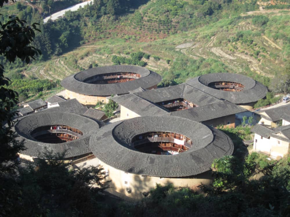 Nơi này giống như một pháo đài khổng lồ với kiến trúc thổ lâu đặc trưng, hay còn gọi là kiển trúc Hakka do người Hakka xây dựng vào thế kỷ 12. Có khoảng 200 căn phòng bên trong và nó đã được đăng ký như là một di sản văn hóa thế giới vào năm 2008. Với mục đích chính là bảo vệ, thổ lâu chỉ có một cửa và không có cửa sổ dưới tầng trệt. Cổng của thổ lâu là điểm trọng yếu nhất, thường được gia cố bằng đá và sắt.